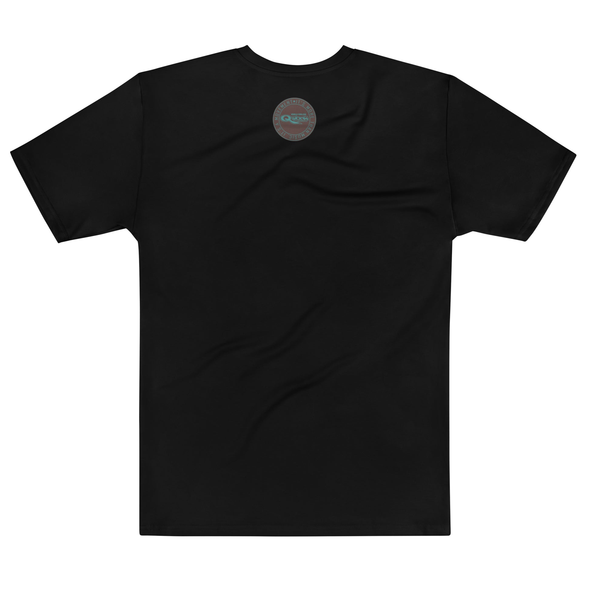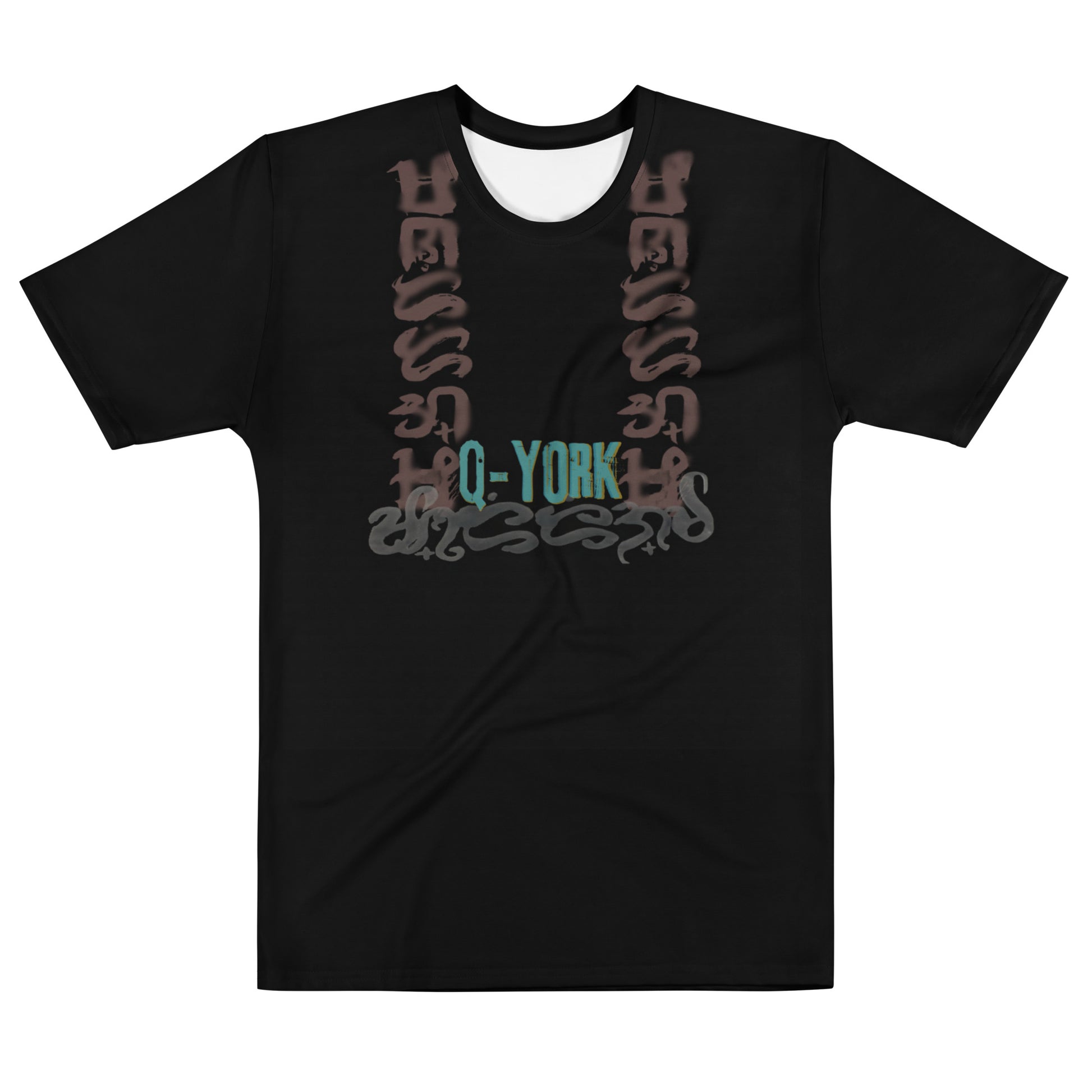 The Bloodline Script Tee channels ancestral energy through a modern lens — where street style meets sacred design. Bronze tribal calligraphy cascades vertically along the chest, framing the teal Q-York emblem at the heart — a mark of legacy and creative lineage.
